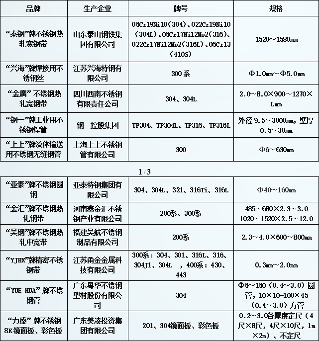 1.2014年度中國不銹鋼行業名牌產品獲獎名單