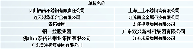 2015年6月6日,中國不銹鋼協會(籌)暨中國金屬材料流通協會不銹鋼分會在江蘇省南通市召開了“2015年中國不銹鋼協會第一次會長辦公會議會暨2014年度中國不銹鋼行業先進企業名牌產品評審會議”,經評審工作小組初評,報評審會議終評,同意授予以下產品、單位和個人為2014年度中國不銹鋼行業的名牌產品、先進企業、優秀企業家、優秀經理人。名單如下: