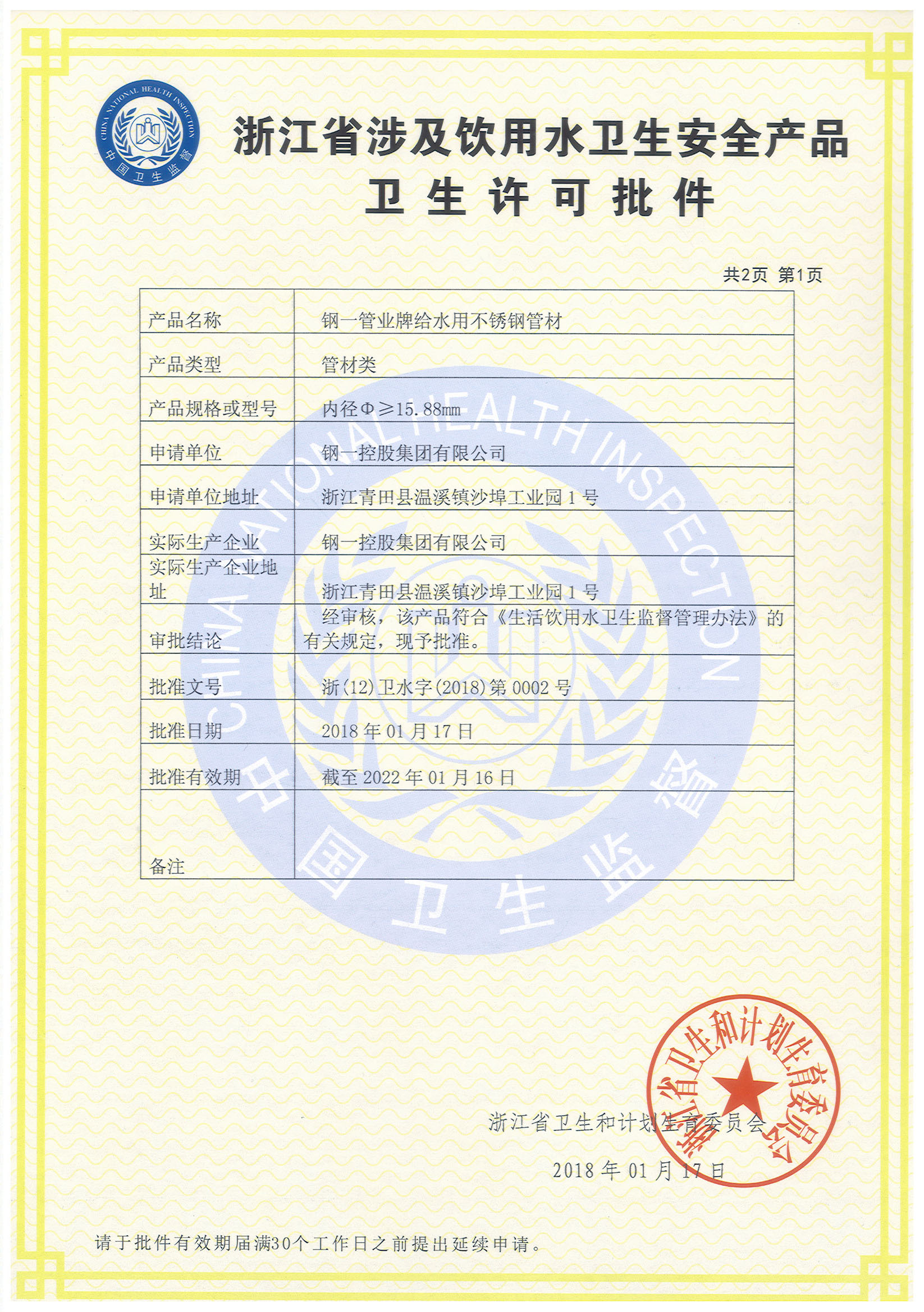 涉(she)水(shui)產品衛生(sheng)許可批件
