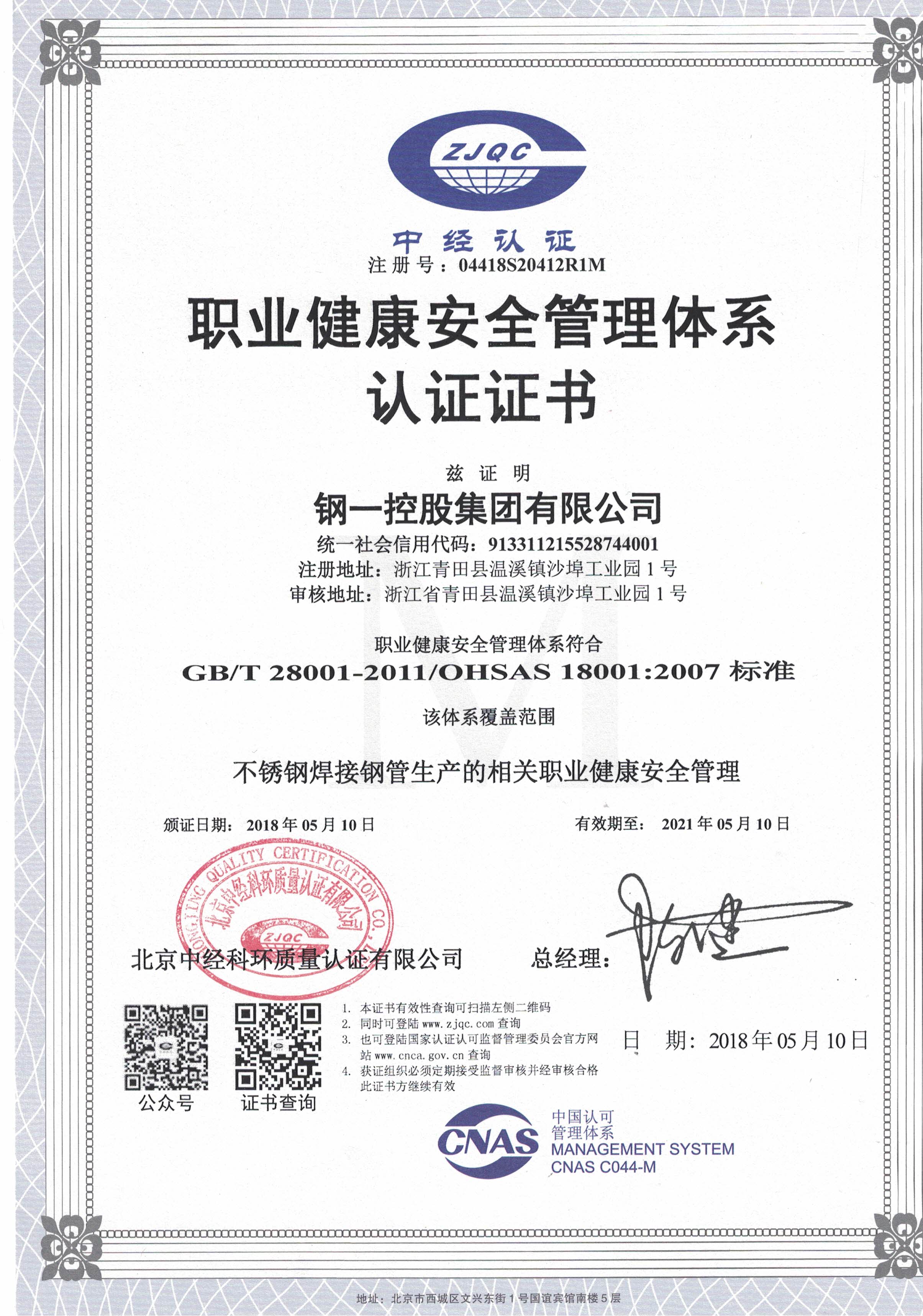GB-T 28001職業(ye)健康安(an)全管理體系認(ren)證證書