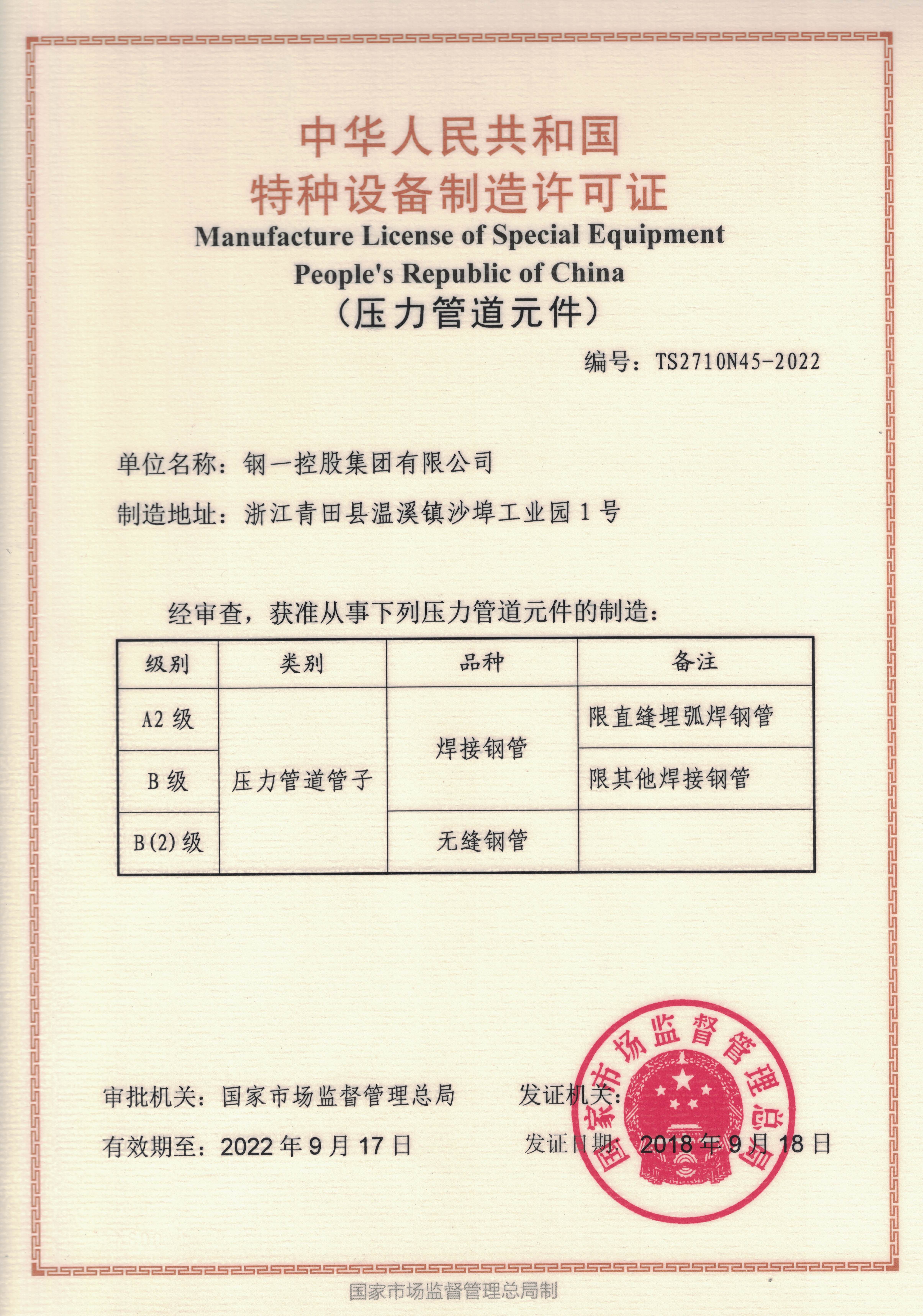 特(te)種設備制造許(xu)可證(TS)